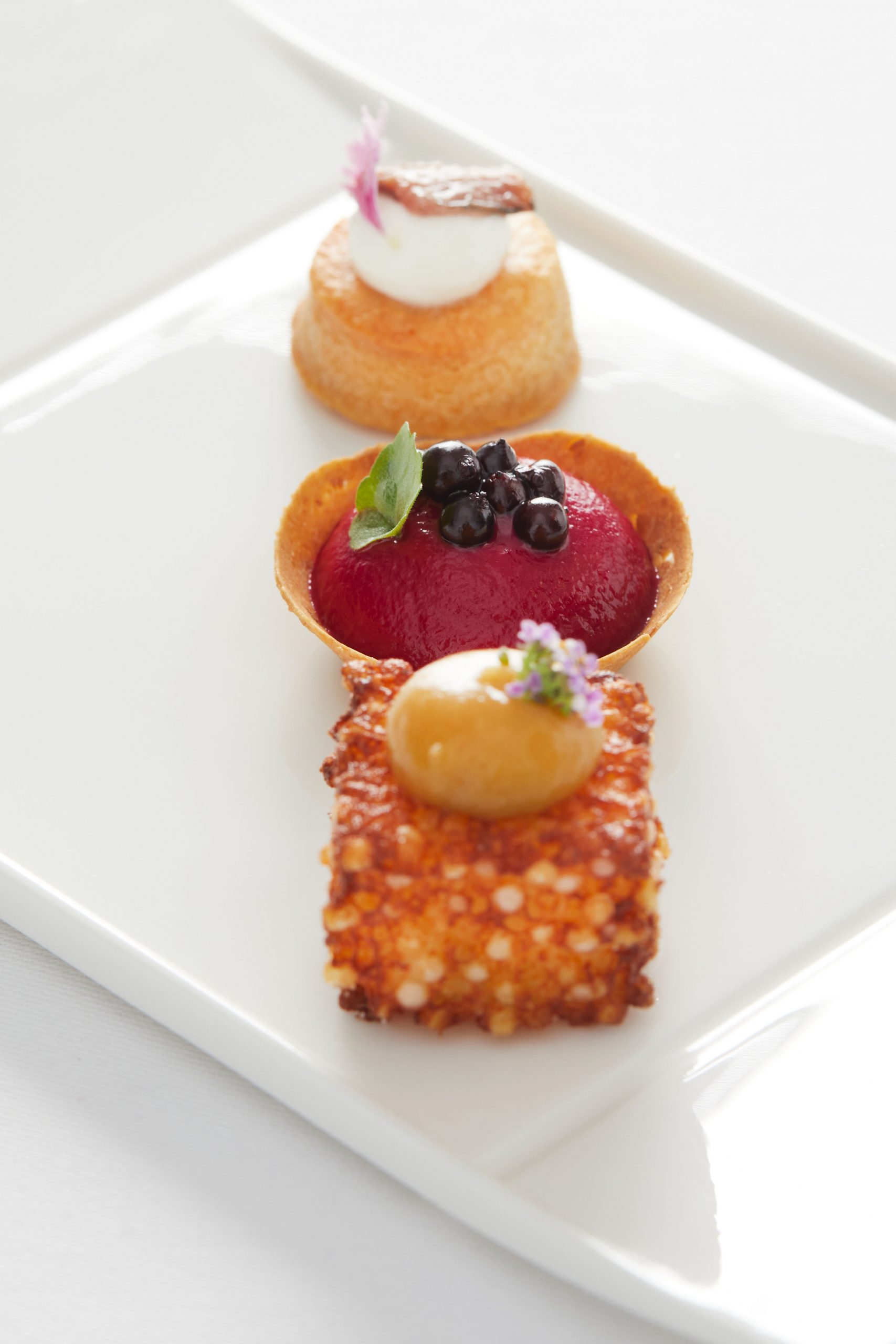 (Amuse bouche, entrée, poisson, viande, dessert)